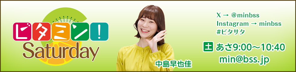 メール min@bss.jp / FAX 0859-35-0242 / お便り・ハガキ 〒683-8670 BSSラジオ「ビタミン!Saturday」