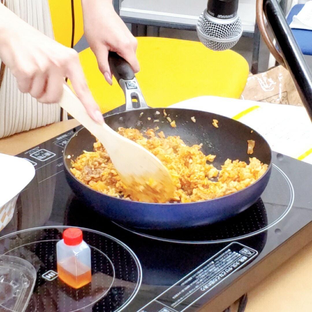 ③キムチ牛丼を入れ、ほぐすように炒める。